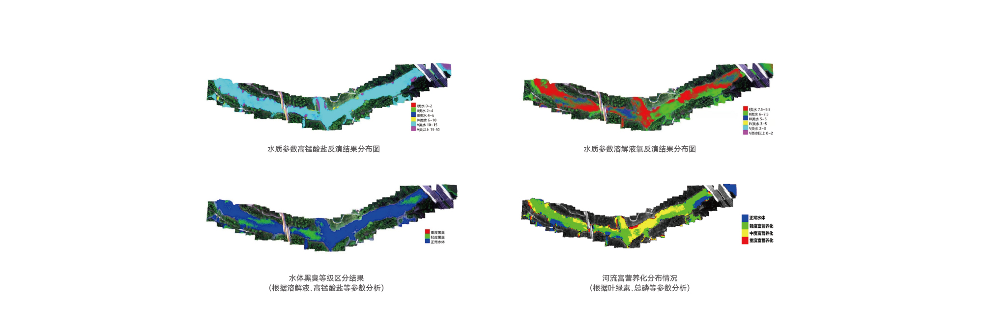 可反演获得总氮、总磷、叶绿素 a、悬浮物、高锰酸钾指数、藻类分布和富营养化指数等水体指标。