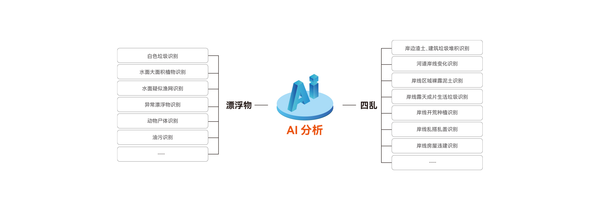 自动识别河道水面上是否存在白色垃圾、水藻、救生圈、油污等漂浮物。