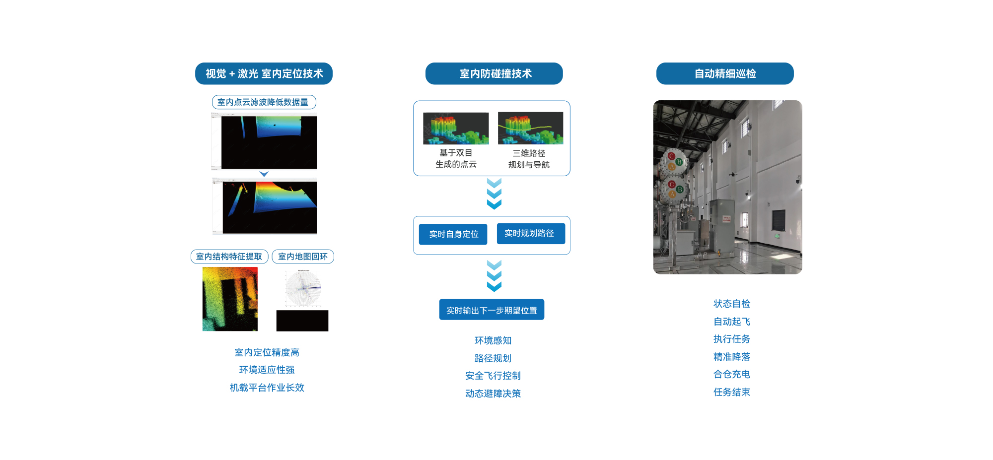 结合无人机自动机库,实现室内变电站中高层区域电气设备无人化、智能化巡检。
