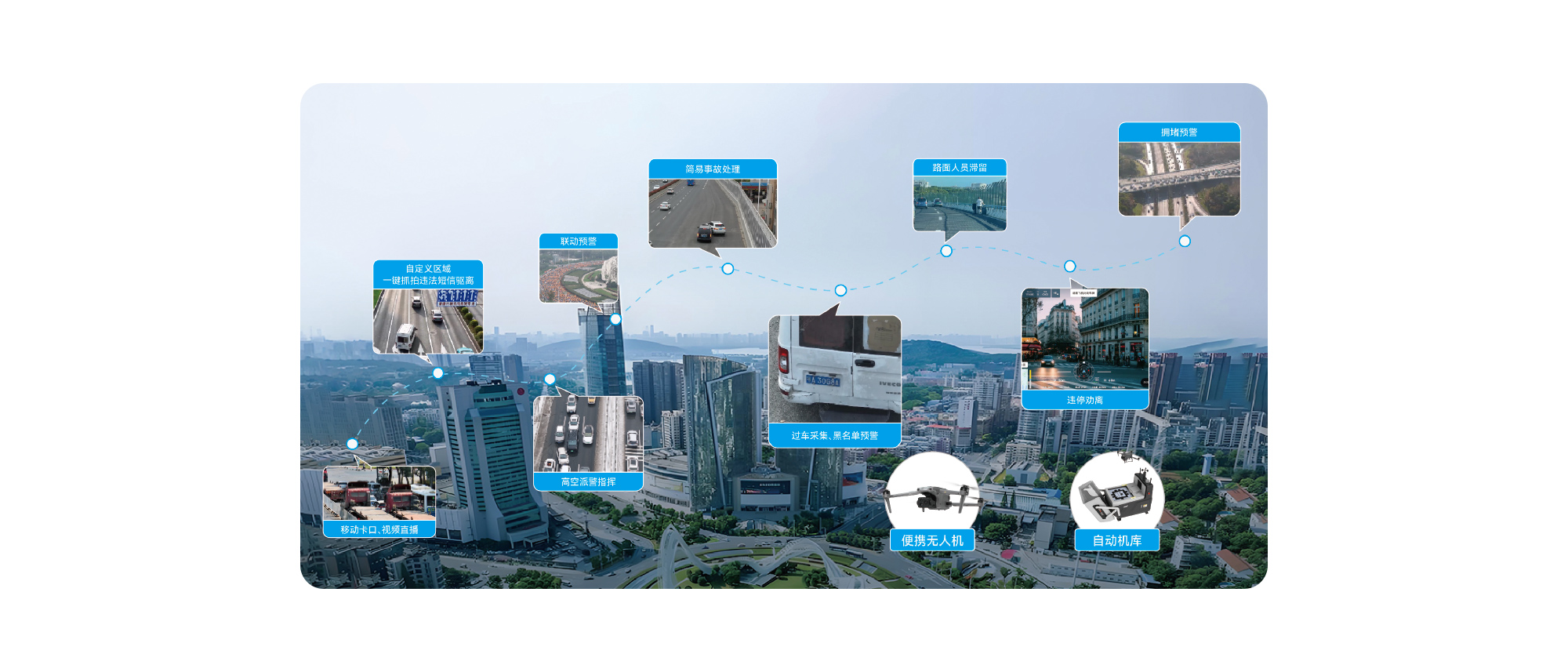 无人机产品已通过公安部交通管理科学研究所道路交通安全产品检测,可将无人机拍摄的视图数据,经由无人机执法专用APP流转至公安交通管理综合应用平台作为执法证据固定。