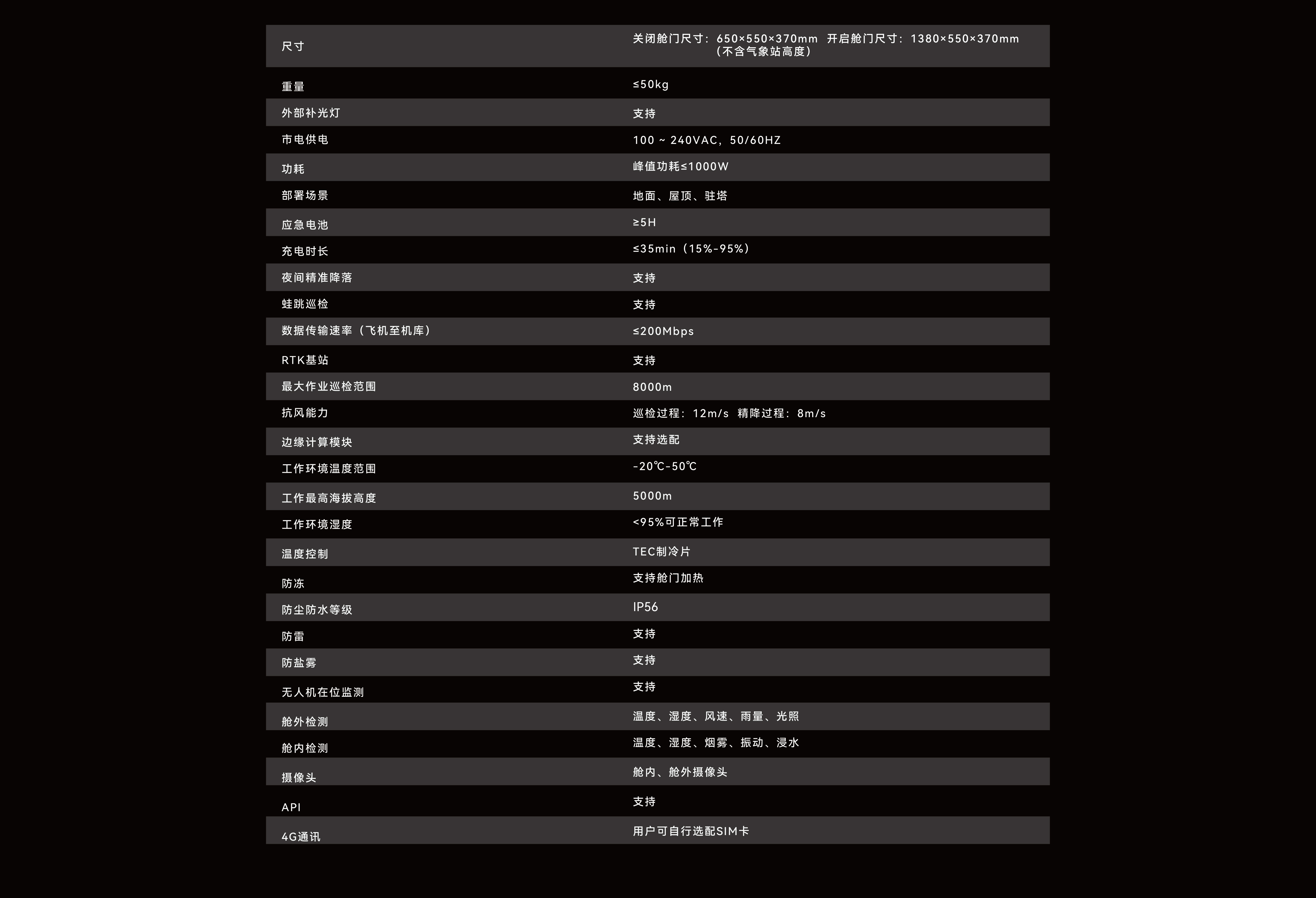 K03配备应急电源,当外部供电中断时,可毫秒级切换至应急电源供电,保证无人机的安全返航和回收。